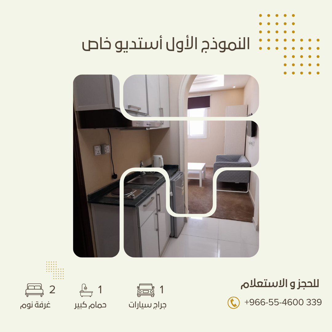 استديو مفرد خاص تقسيم الوحدة غرفة - حمام - مني مطبخ. الأثاث غرفة نوم كاملة سرير ودولاب وتسريحة وكمودينة مكتب، كرسي دراسة، صوفا، طاولة قهوة، ستارة...